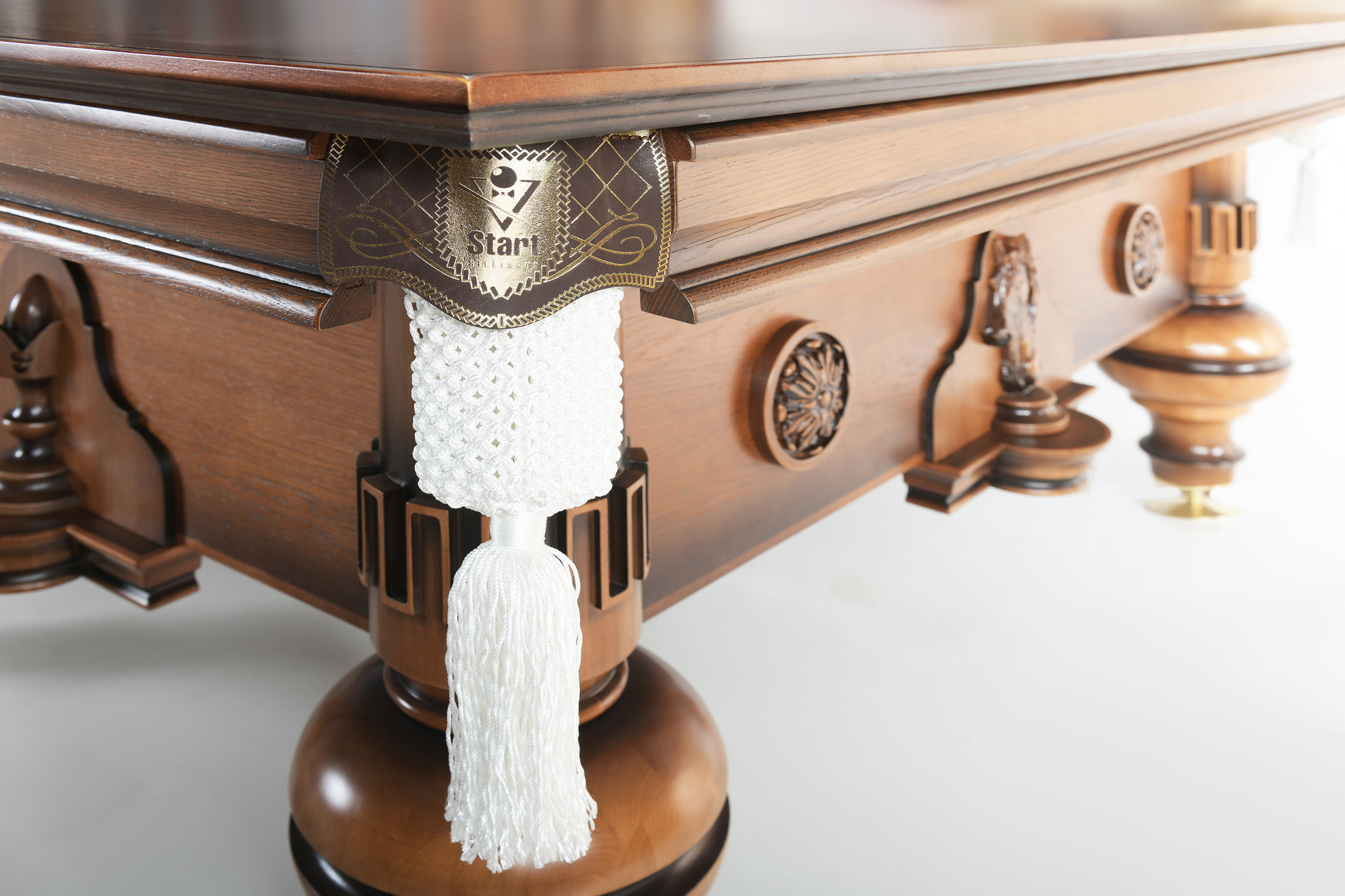 В конструкции стола используется уникальная разработка Фабрики «Старт» – эксклюзивная металлическая рама. Такой конструкторский прием обеспечивает непревзойденную жесткость и высокие игровые качества бильярдного стола.