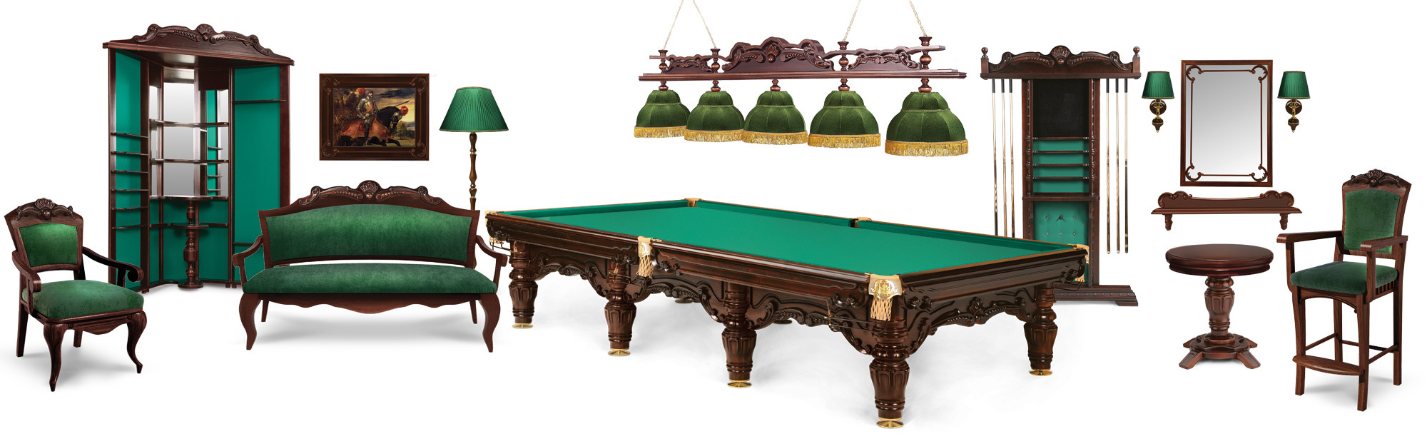 Центральный элемент коллекции - бильярдный стол «Император» - украсит любые апартаменты. Резные узоры на лафете из натурального дерева, качественный сланец игрового поля, лучшие сукно и резина делают «Император» настоящим произведением искусства с художественной и спортивной точек зрения.