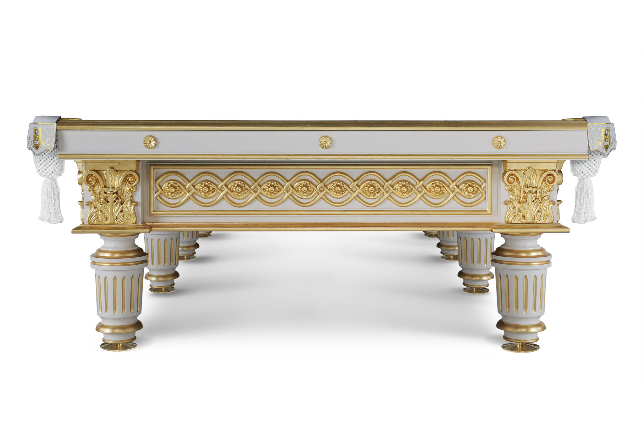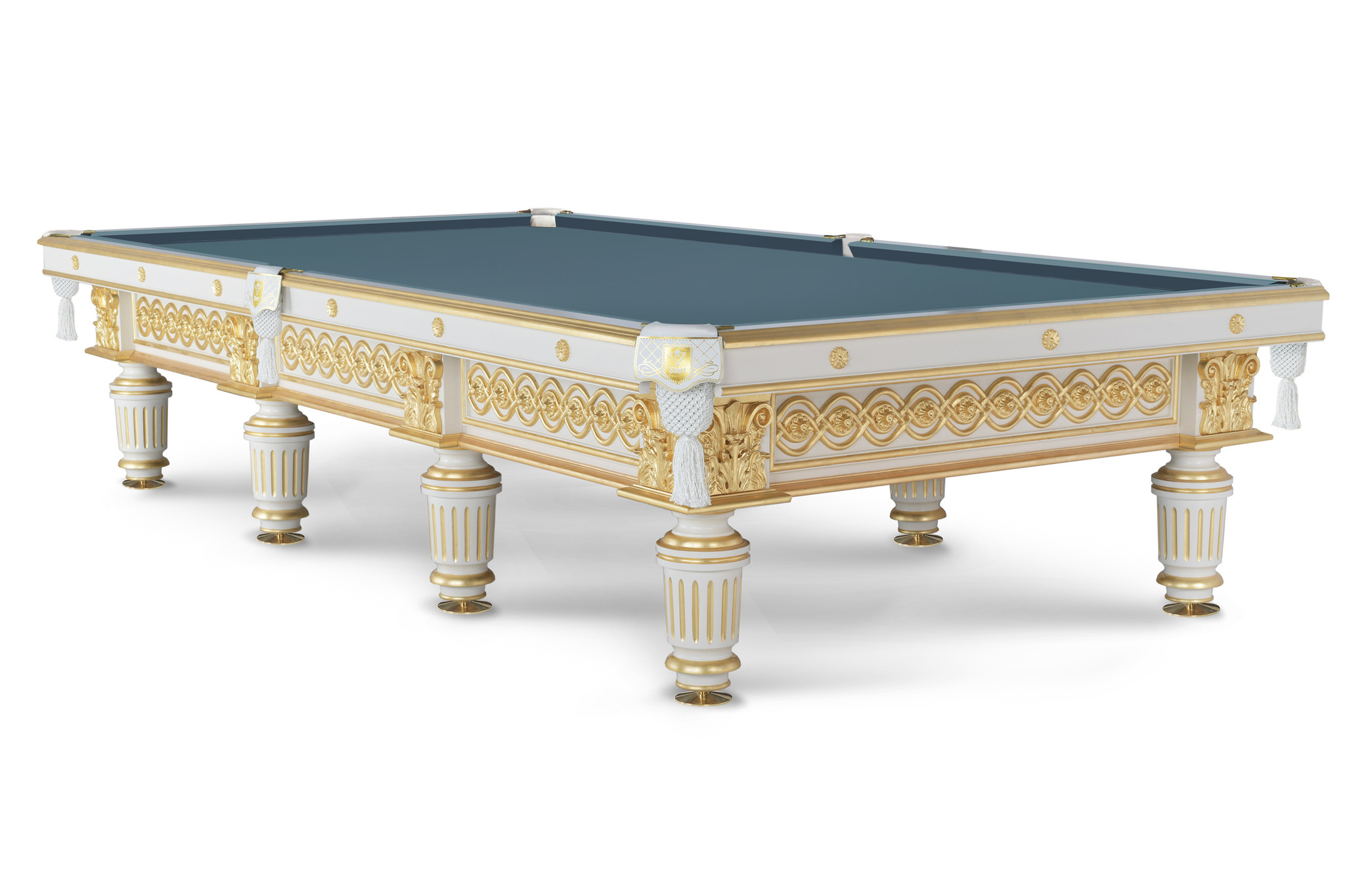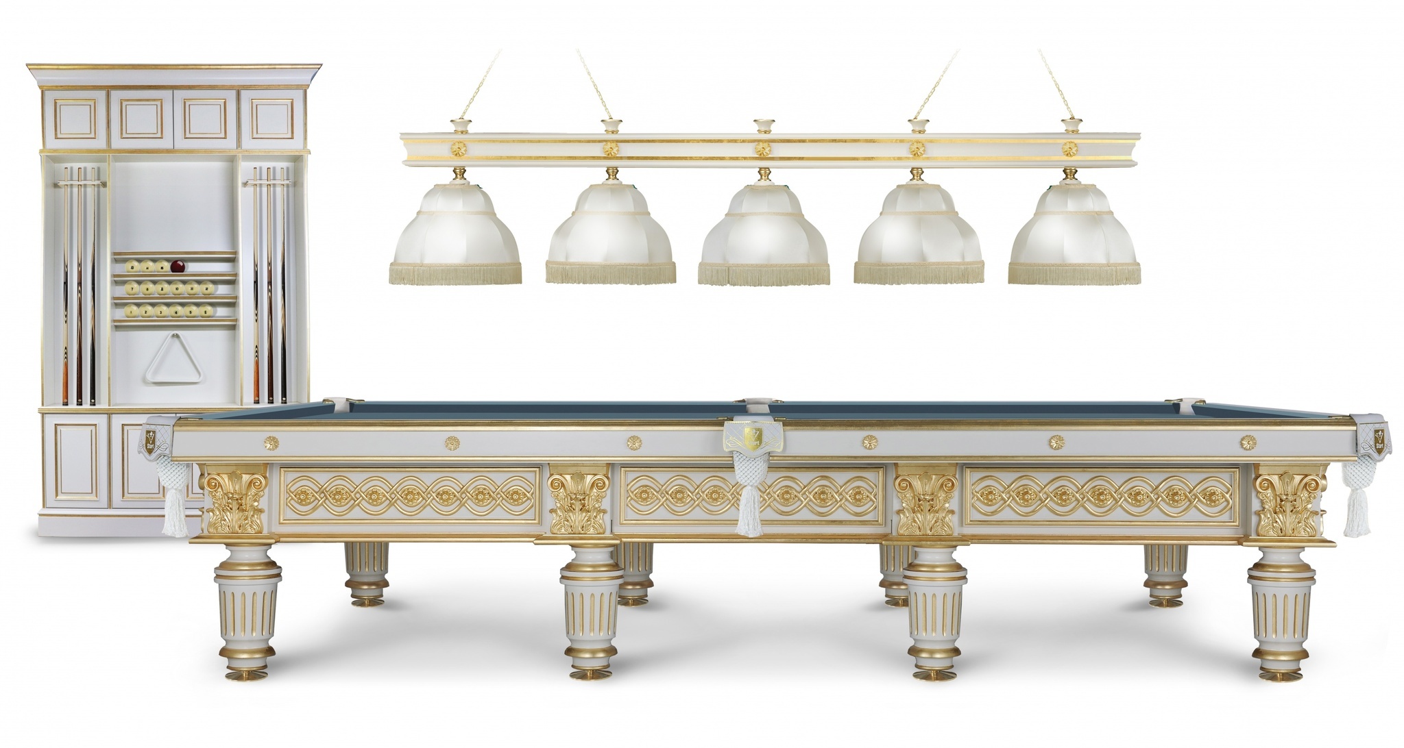 В создании этого бильярда применены самые передовые технологии Фабрики, в столе используются эксклюзивные комплектующие и ценные материалы. Категория игровых качеств соответствует высочайшему бильярдному стандарту.