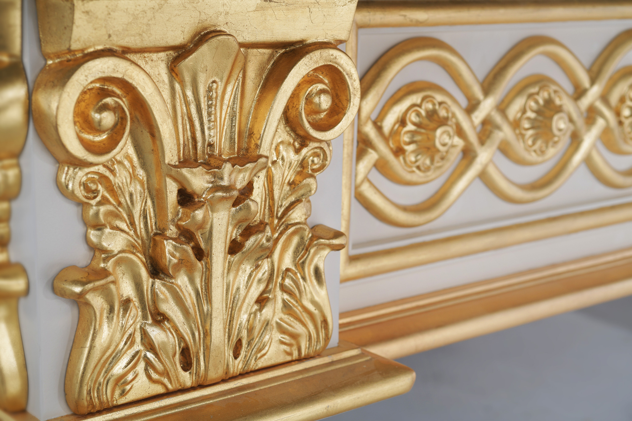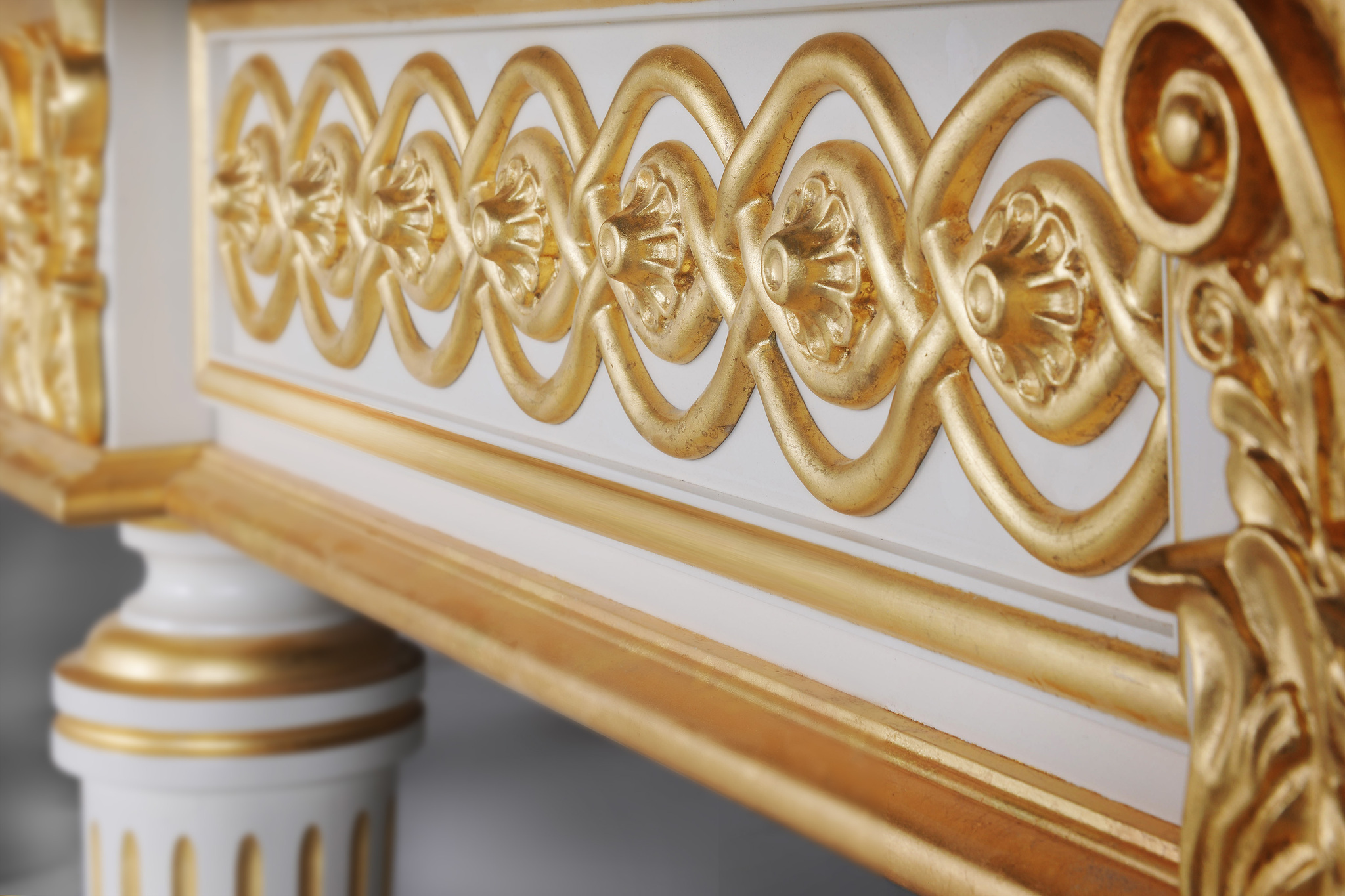 Стол с массивной ручной резьбой по дереву. Роспись стола плотно перекликается с тематикой, отличается выразительной живописной техникой, художники Фабрики выполняют ее в ручную. Сюжет полотна выбирается заказчиком индивидуально.
