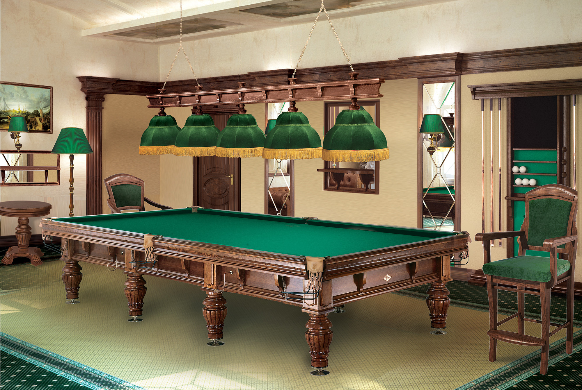 Бильярдная коллекция «Президент» сочетает основательные четкие линии и роскошь натуральных материалов классической цветовой гаммы.