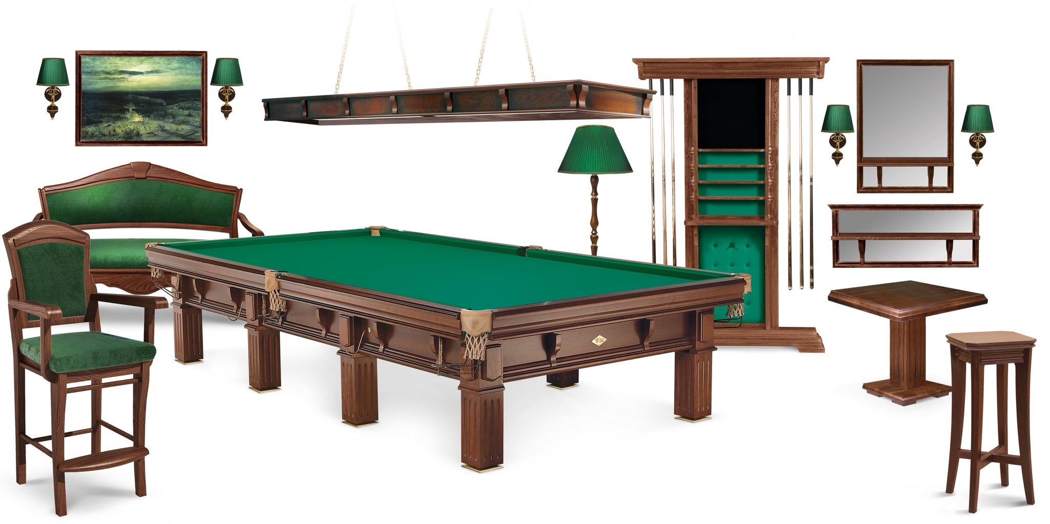 Эту коллекцию модельного ряда «Президент» отличают простота форм и строгий дизайн. Массивные квадратные ноги бильярдного стола и столика придают основательность и устойчивость визуальному облику всей коллекции.