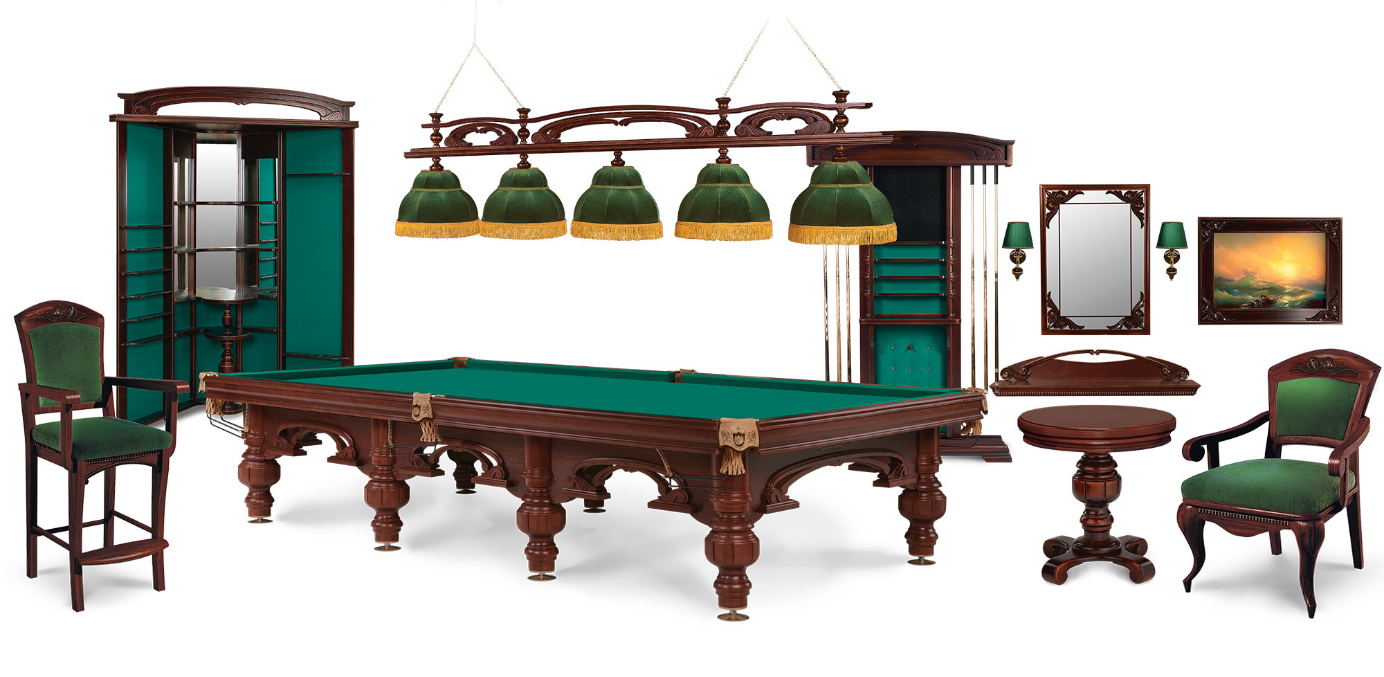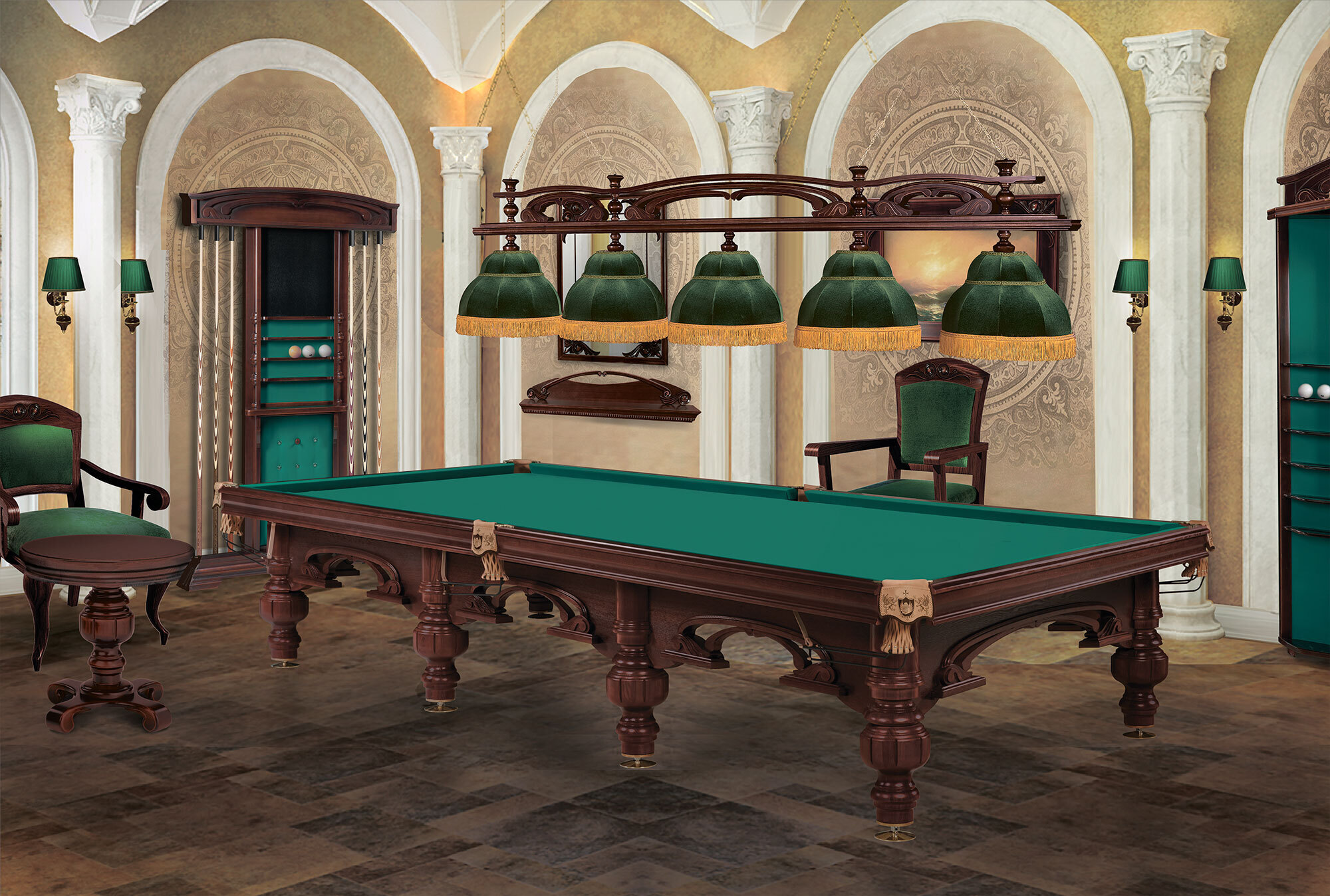 Жемчужиной коллекции является бильярдный стол «Венеция» - резной лафет ручной работы, кожаные лузы ручного тиснения, итальянский сланец в основе игрового поля, бельгийское сукно. Металлическая несущая рама обеспечит совершенную жесткость конструкции и игровые качества профессионального бильярда. Стабильность усиливают винты ног увеличенного диаметра и литые латунные опорные чашки. Абсолютную горизонтальность поверхности обеспечивает юстировочная система с 50 регулировочными точками. Для создания бильярдной коллекции «Венеция» используются только натуральные материалы.