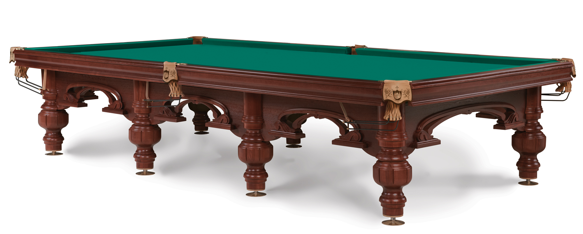 Стабильность усиливают винты ног увеличенного диаметра и литые латунные опорные чашки. Абсолютную горизонтальность поверхности обеспечивает юстировочная система с 50 регулировочными точками. Стол комплектуется высококачественным сукном бренда Manchester.