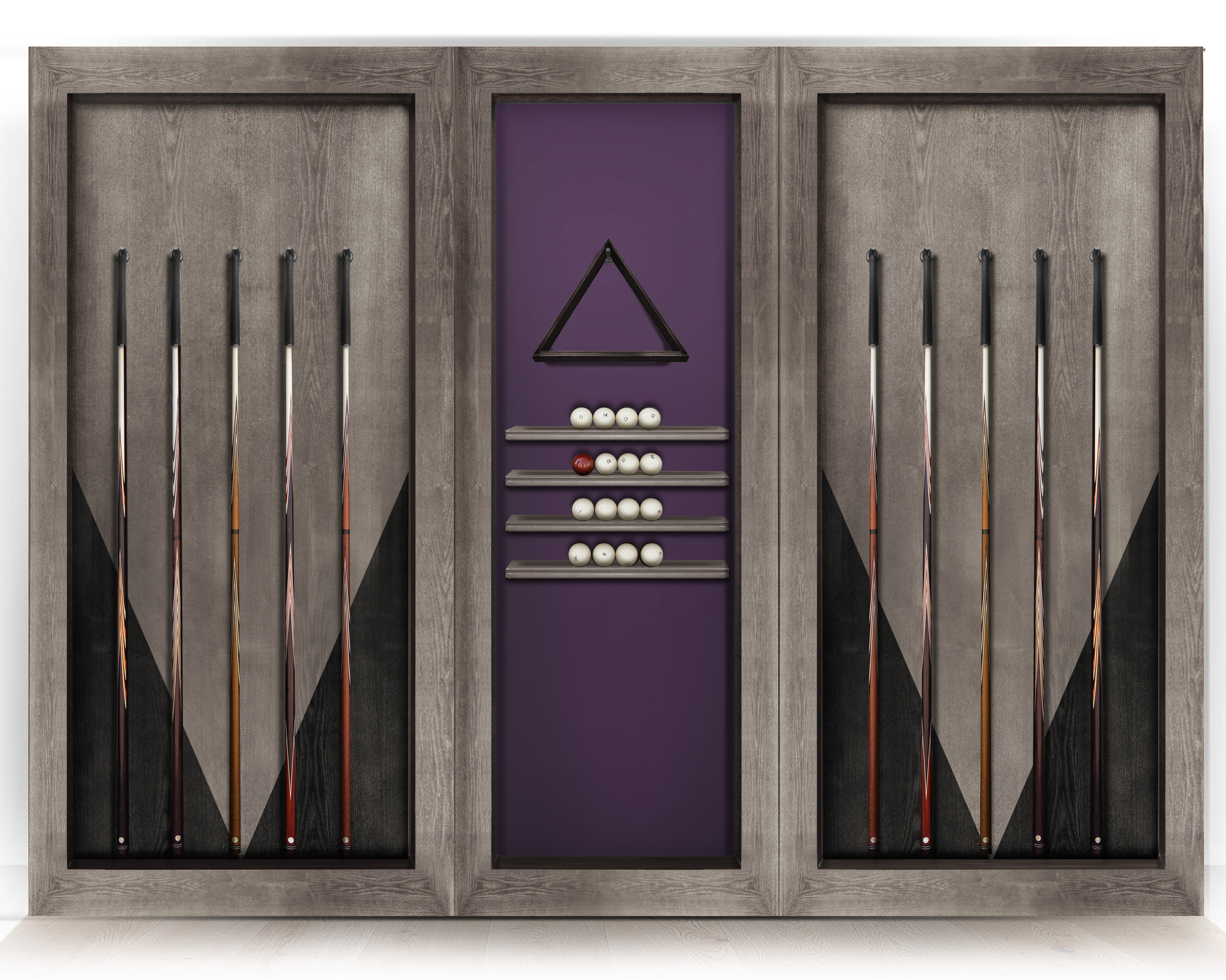 Киевница, состоящая из 3 частей и рассчитанная для хранения 10 или 8 киев. Оснащена специальными полочками для бильярдных шаров и имеет удобный подвес, который обеспечивает легкий доступ к треугольнику для расстановки шаров. Данная киевница позволяет держать все необходимое оборудование в одном месте.