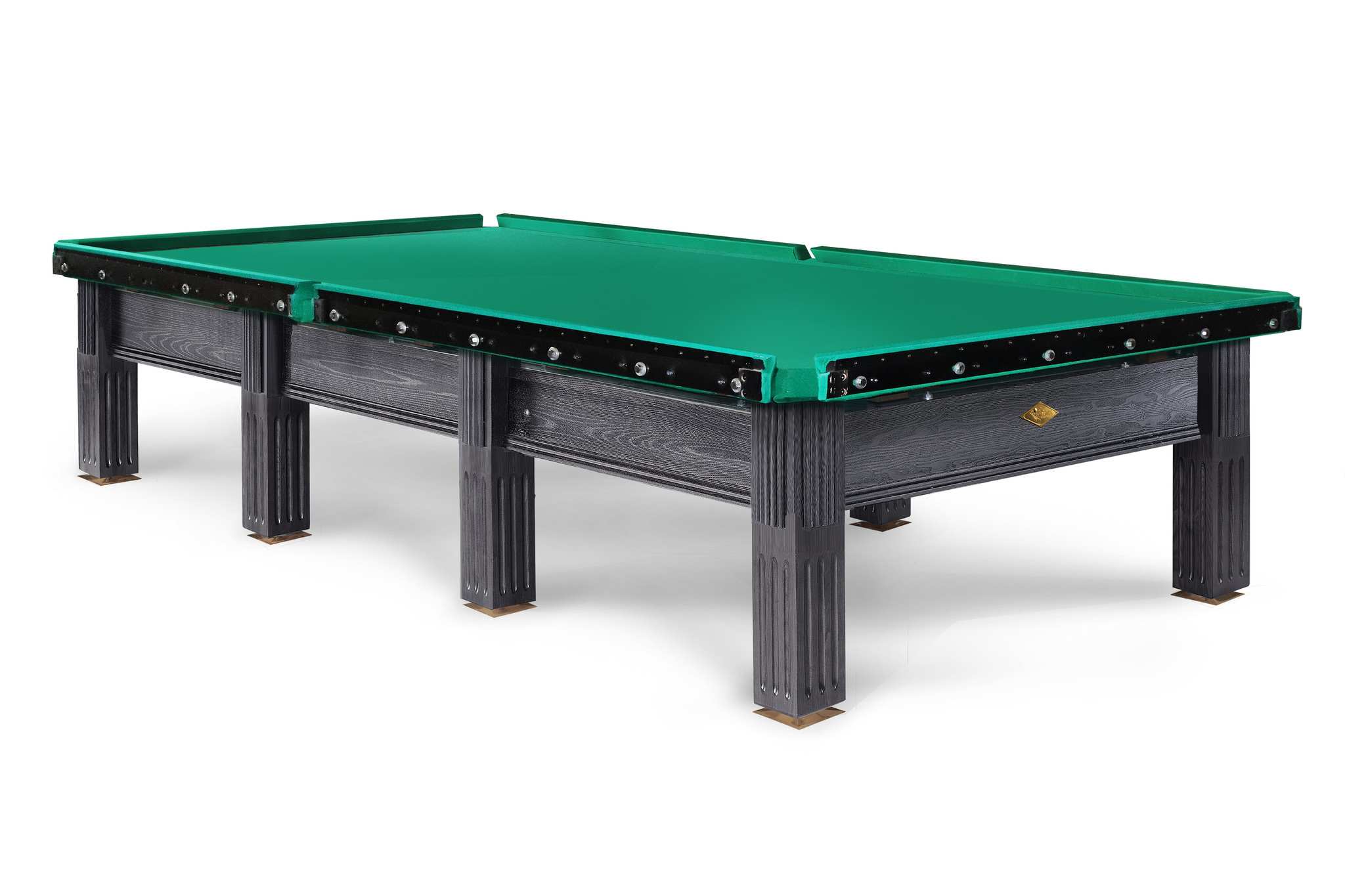 Модель также усовершенствована усиленным крепежом, в изготовлении используется исключительно массив дерева и лузы из натуральной кожи . На столе такого уровня используются только латунные скобы на лузы и латунные чашки опор, лучшее сукно Manchester 70 wool Yellow green competition и амортизаторы Start Super Pro, рекомендованные ФБСР для проведения чемпионатов.