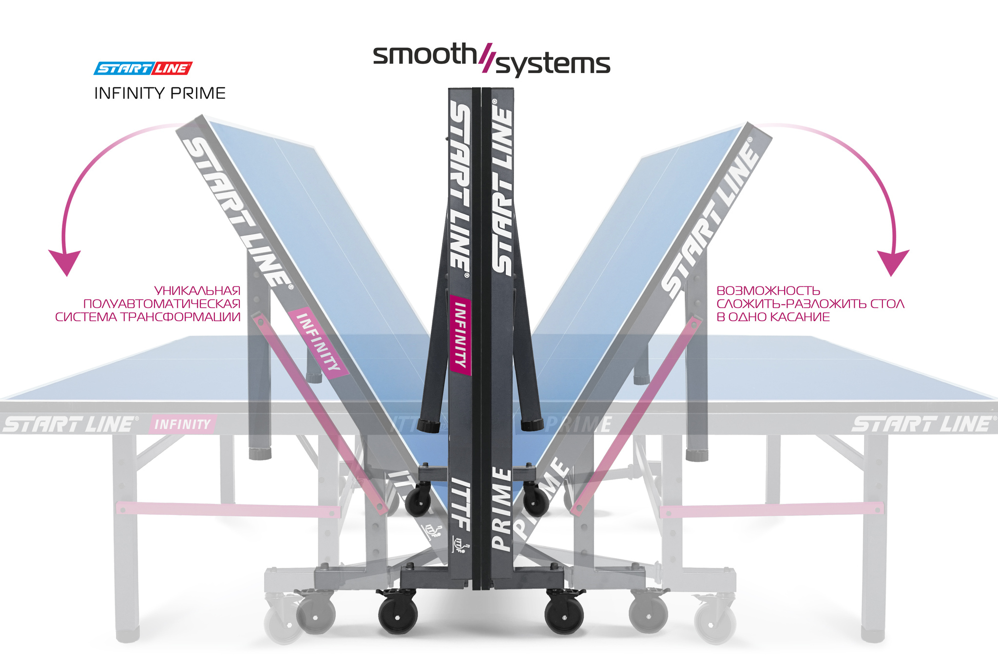 INFINITY PRIME — новый профессиональный теннисный стол для игры в помещении самого высокого уровня. Собственные производственные мощности Start Line позволили модернизировать технологию создания столов и вывести INFINITY PRIME в премиальный сегмент, аналогов которому в России нет! Непревзойденное качество, соответствие стандартам ITTF, удобство эксплуатации и, конечно же, эффектный дизайн — важные достоинства новой модели.