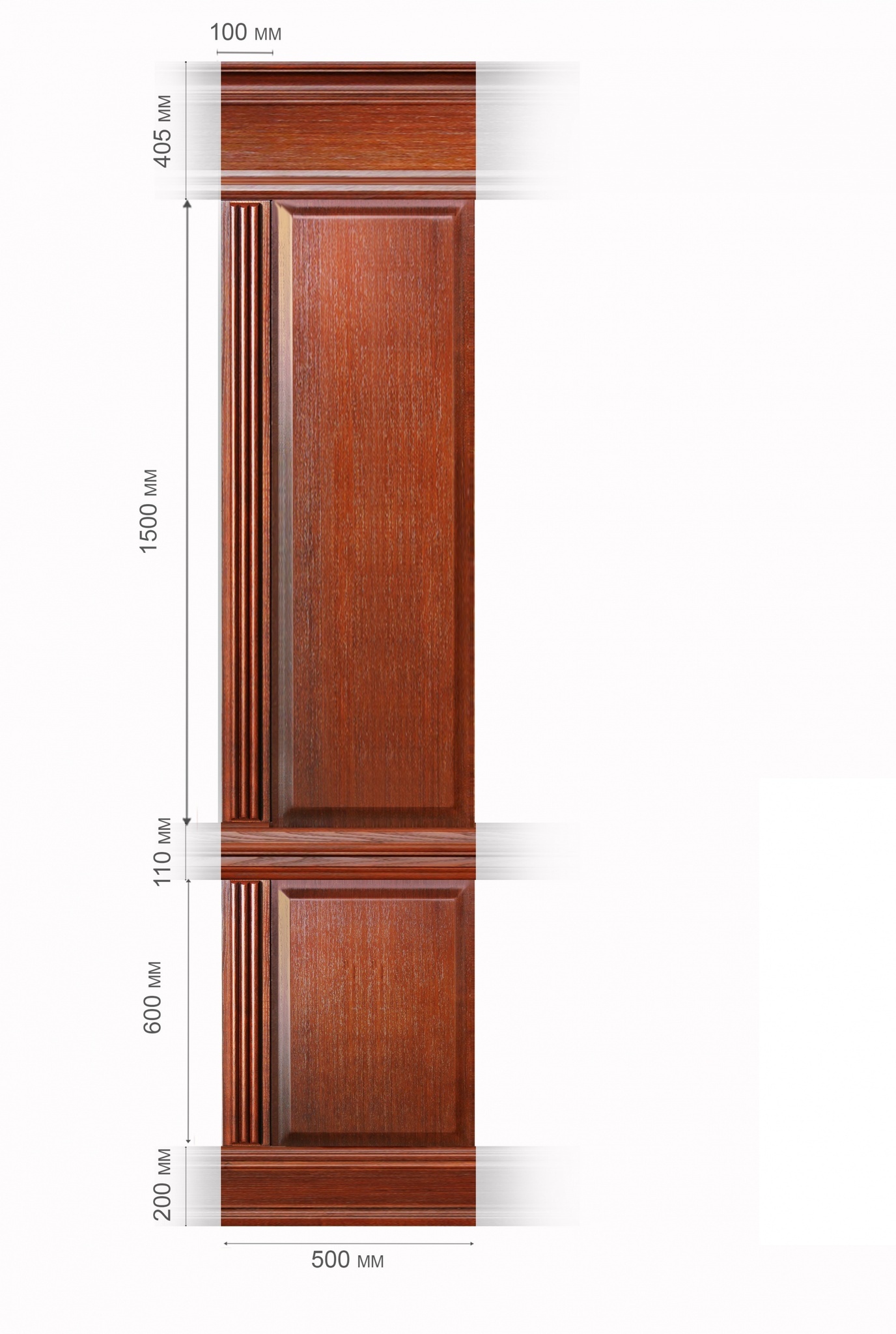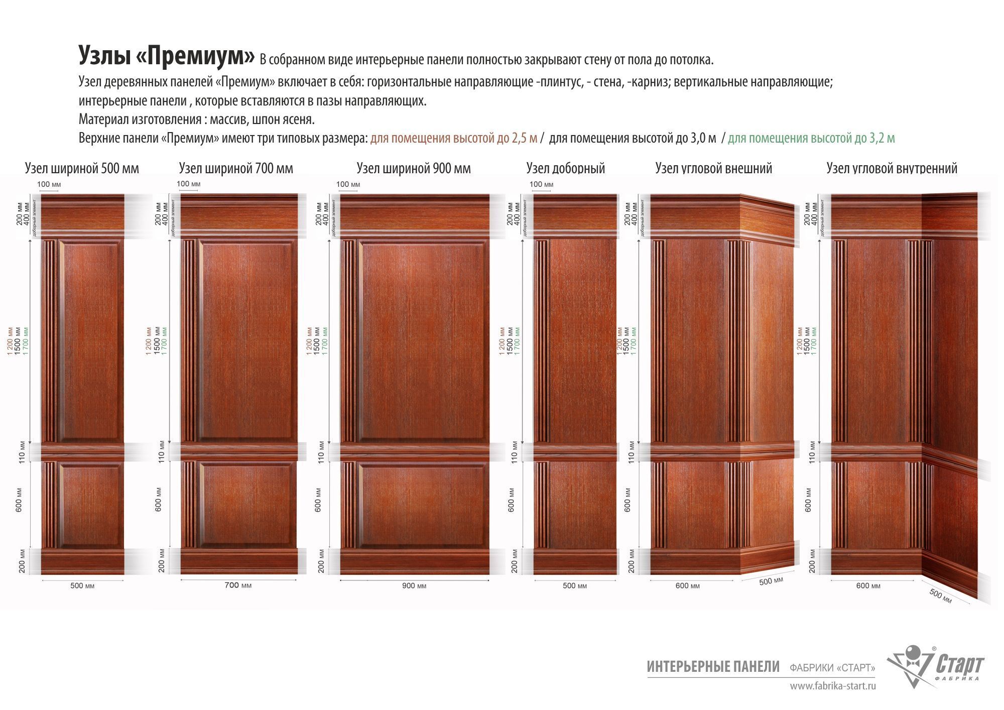 Узел деревянных панелей «Премиум» включает в себя: горизонтальные направляющие -плинтус, - стена, -карниз; вертикальные направляющие;