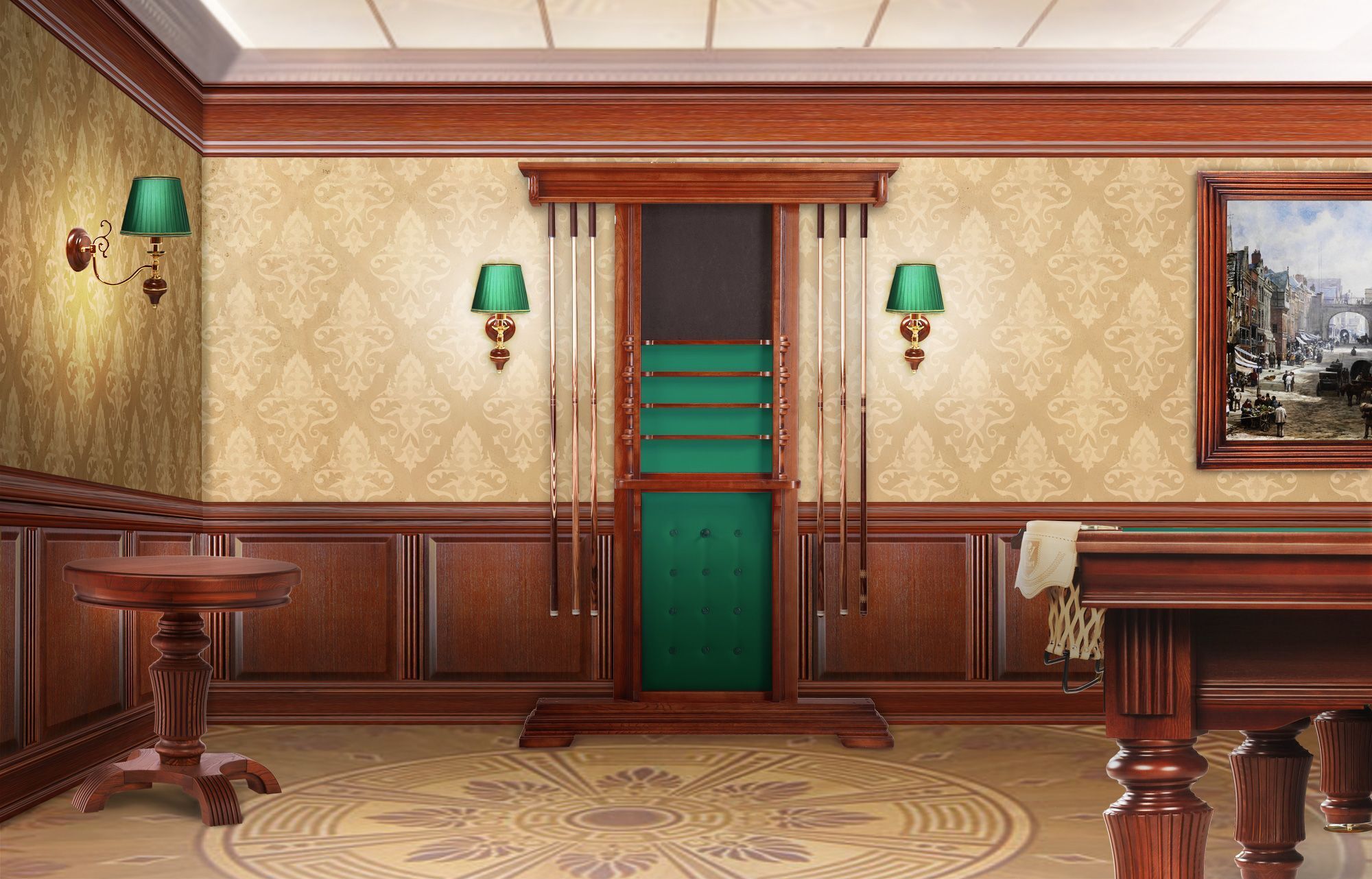 В собранном виде интерьерные панели закрывают нижнюю часть стены и верхнюю область карниза.