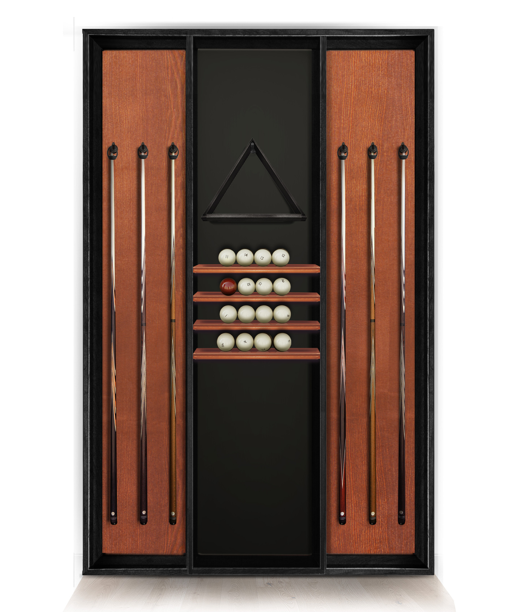 Лаконичный и элегантный дизайн новой киевницы органично дополнит интерьер современной бильярдной комнаты. Модель рассчитана для хранения 6 киев на подвесе. Специальные полочки и держатель позволят также разместить шары и треугольник, что гарантирует их сохранность и легкий доступ во время игры.