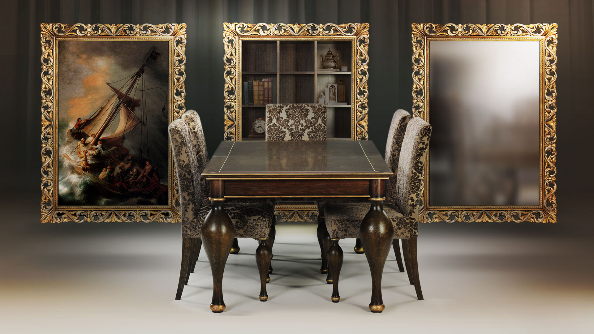 Коллекция серии «Буржуа» из десяти предметов в цвете «Мореный дуб» и обрамлении багета «Винченцо» – это яркий представитель стиля итальянского барокко. Пышность форм и цвета этой мебельной группы гармонично дополнит интерьер роскошных апартаментов. Выразительный образ станет главным акцентом гостиной, библиотеки, зоны отдыха. Отличительная черта мебели от Tivoli – роскошный дизайн, неповторимая отделка, авторская выкраска, ручная работа мастеров.