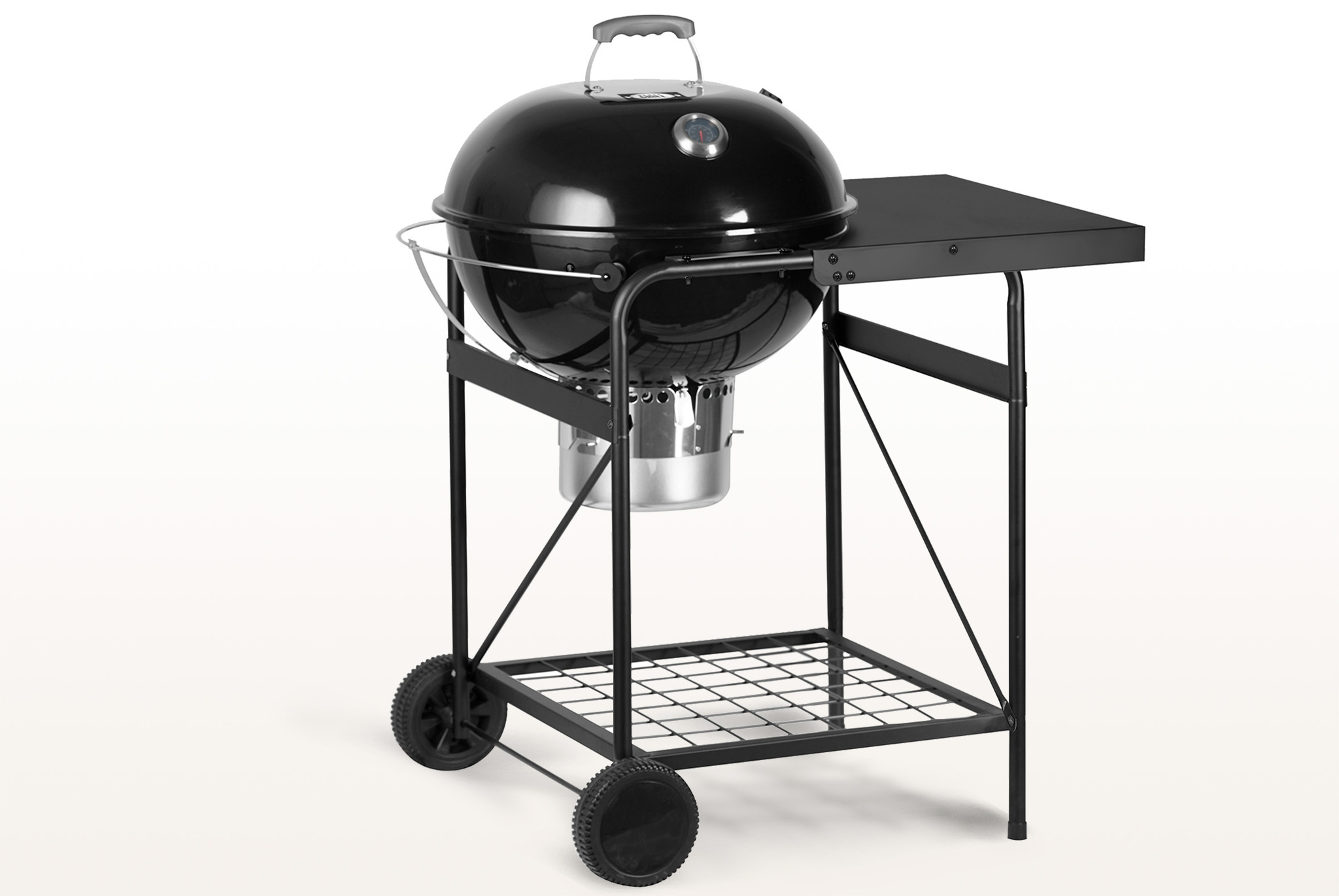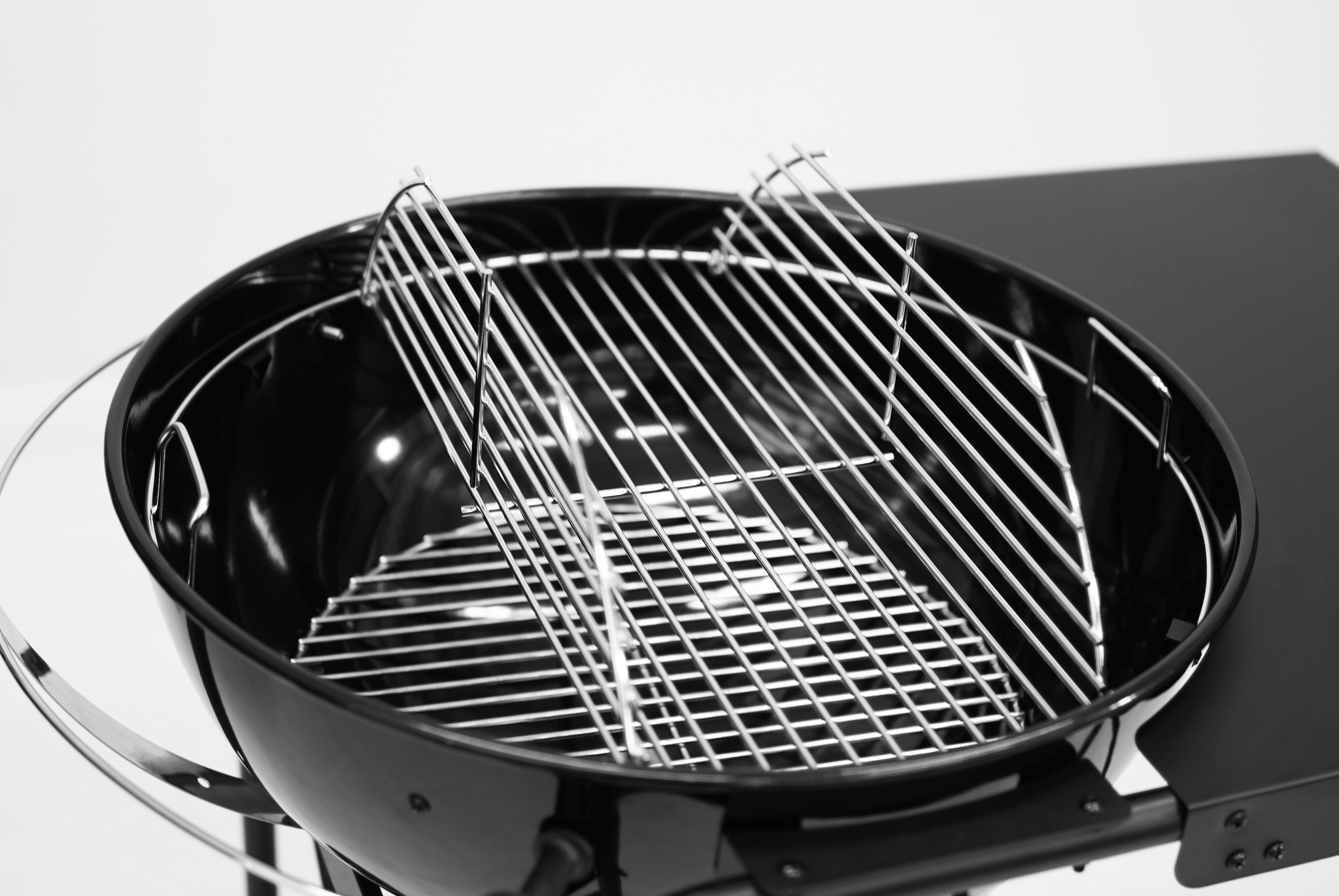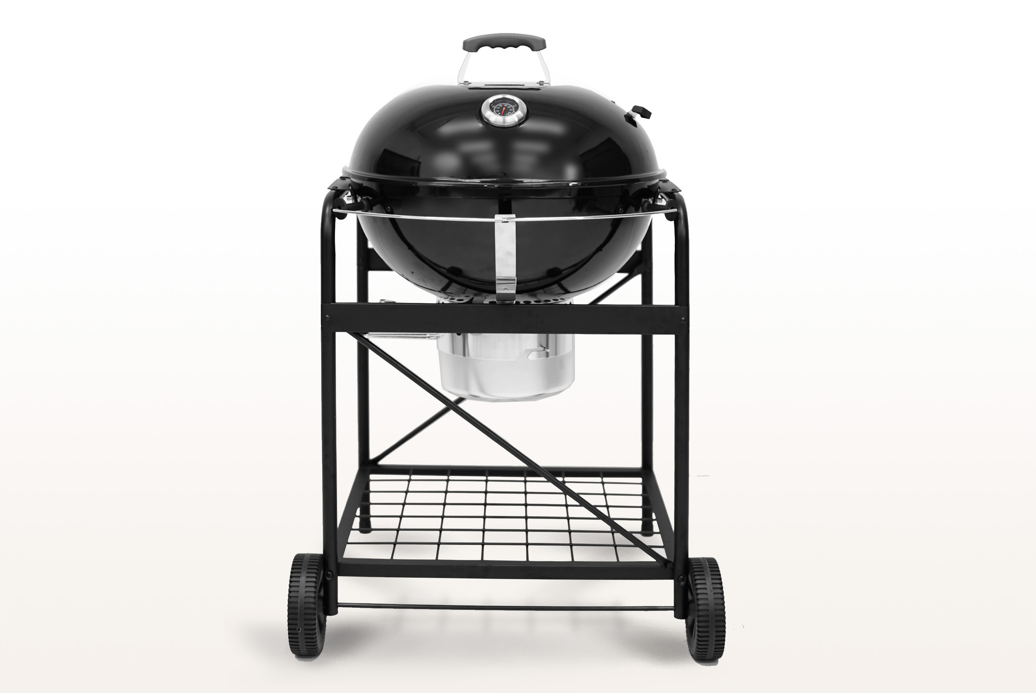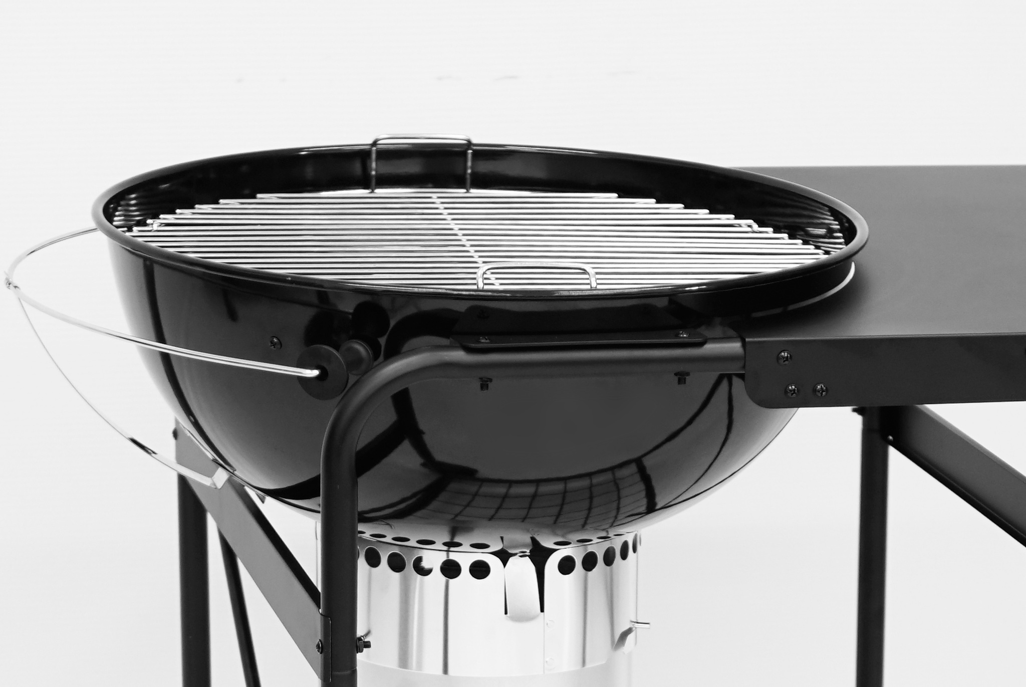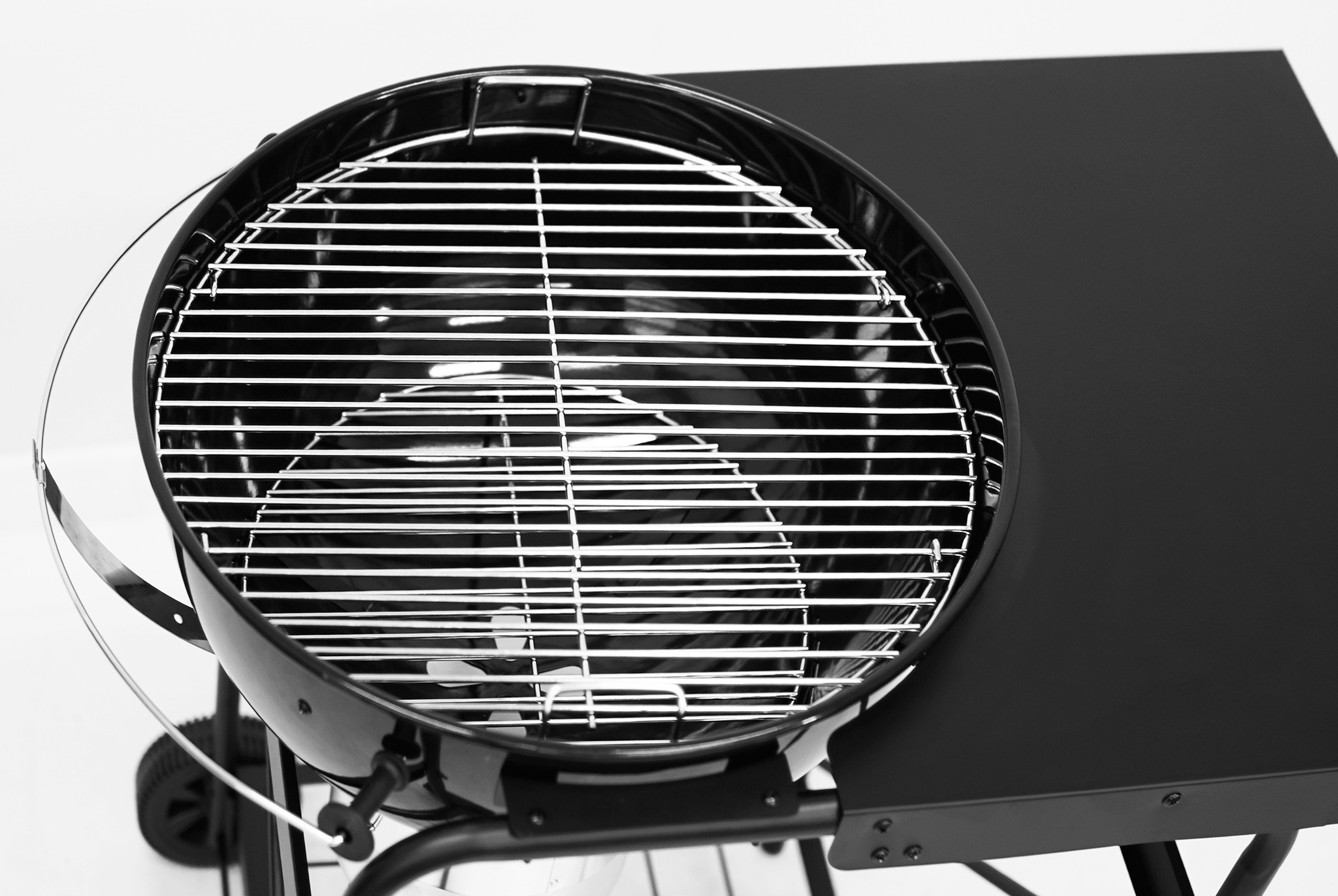Гриль оснащен монолитными устойчивыми опорами колосника и решетки для приготовления. В комплекте поставки предусмотрены два захвата решетки для быстрого и безопасного снятия. Откидная часть решетки позволяет без лишних усилий добавить уголь. Модель оснащена большими транспортировочными колесами для удобного перемещения, а также функциональной нишей для хранения различных аксессуаров. Большая боковая столешница для посуды и аксессуаров станет незаменимым и удобным дополнением при готовке. Боковой кронштейн для крышки гриля внесет еще больше удобства в процесс приготовления блюд.