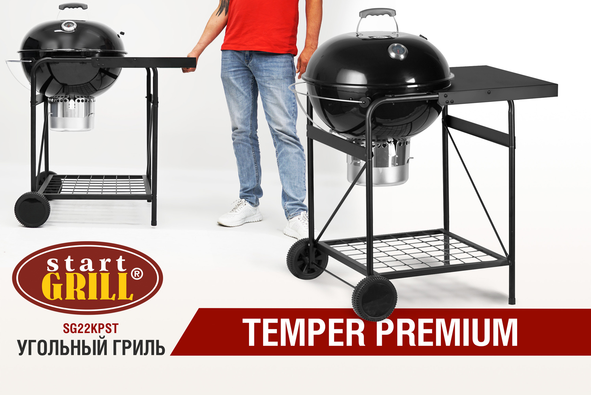 Особенностью TEMPER PREMIUM является увеличенная толщина стенки корпуса и крышки гриля, что продлит срок службы гриля. Верхний вентиляционный клапан имеет удобную ручку. Высокоточный термометр, встроенный в крышку гриля, позволяет без труда контролировать температуру в процессе приготовления. Быстросъёмный зольник увеличенного объема обеспечивает сокращение интервалов между чистками.