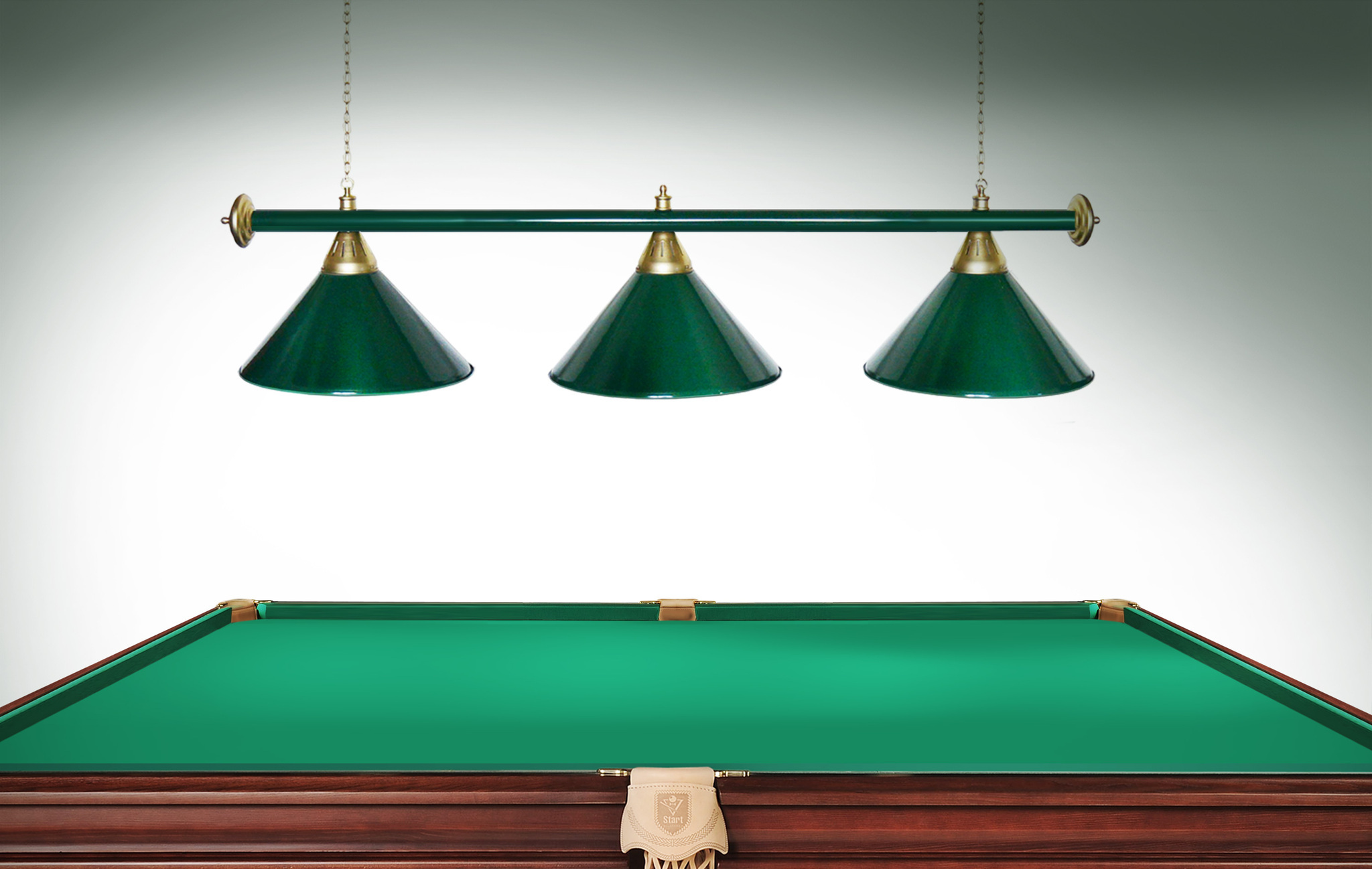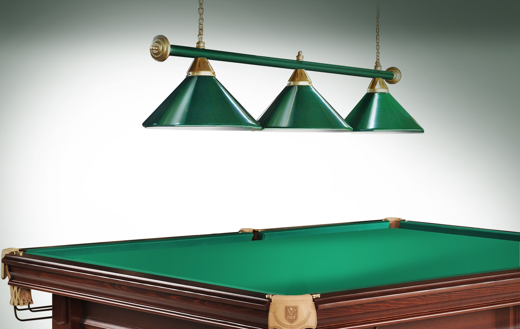 Светильники Startbilliards производства ФС «Горизонт» с 3-мя плафонами комплектуются к столам 7 и 8 футов.