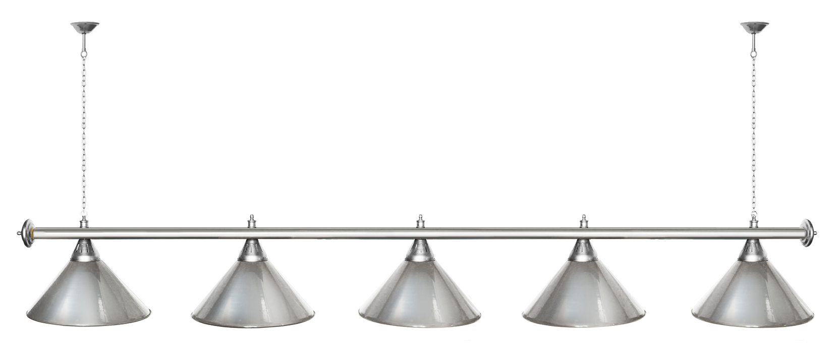 Светильники Startbilliards производства ФС «Горизонт» с 5-ю плафонами комплектуются к столам 10 футов. Укомплектованы цельной металлической штангой с полимерным покрытием. Штанга изготовлена из цельной трубы, что исключает искривление конструкции. Применение керамических патронов увеличивает срок эксплуатации светильника. Металлические плафоны крепятся с помощью зажимных пластин. Длина подвесной цепи 100 см — оптимальное расстояние для расположения источника света над игровым полем стола. В комплект включены две потолочные чашки. Штанга и плафоны поставляются в отдельных упаковках.