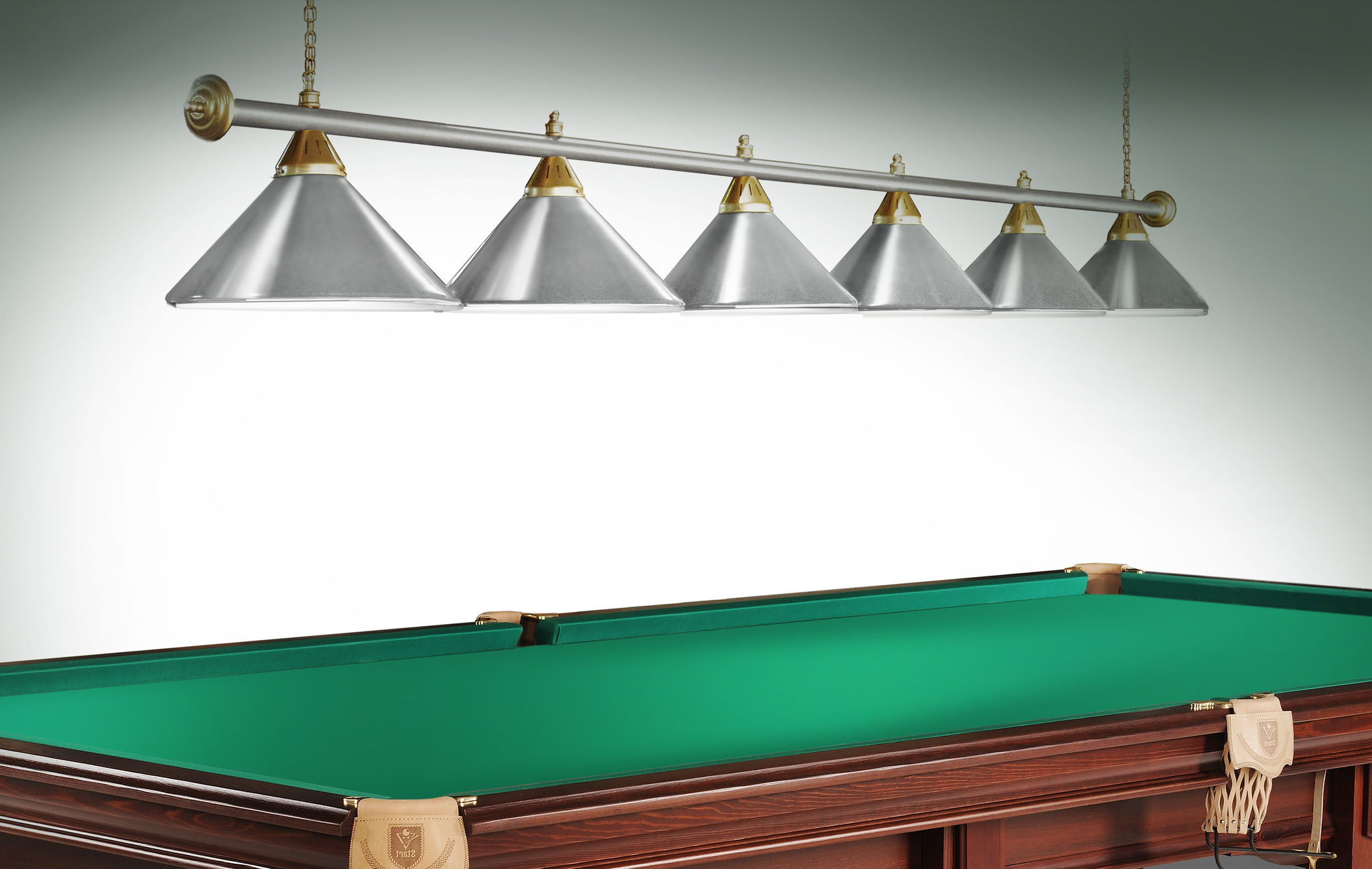 Светильники Startbilliards производства ФС «Горизонт» с 6-ю плафонами комплектуются к столам 12 футов. Укомплектованы цельной металлической штангой с полимерным покрытием. Штанга изготовлена из цельной трубы, что исключает искривление конструкции. Применение керамических патронов увеличивает срок эксплуатации светильника. Металлические плафоны крепятся с помощью зажимных пластин. Длина подвесной цепи 100 см — оптимальное расстояние для расположения источника света над игровым полем стола. В комплект включены две потолочные чашки. Штанга и плафоны поставляются в отдельных упаковках.