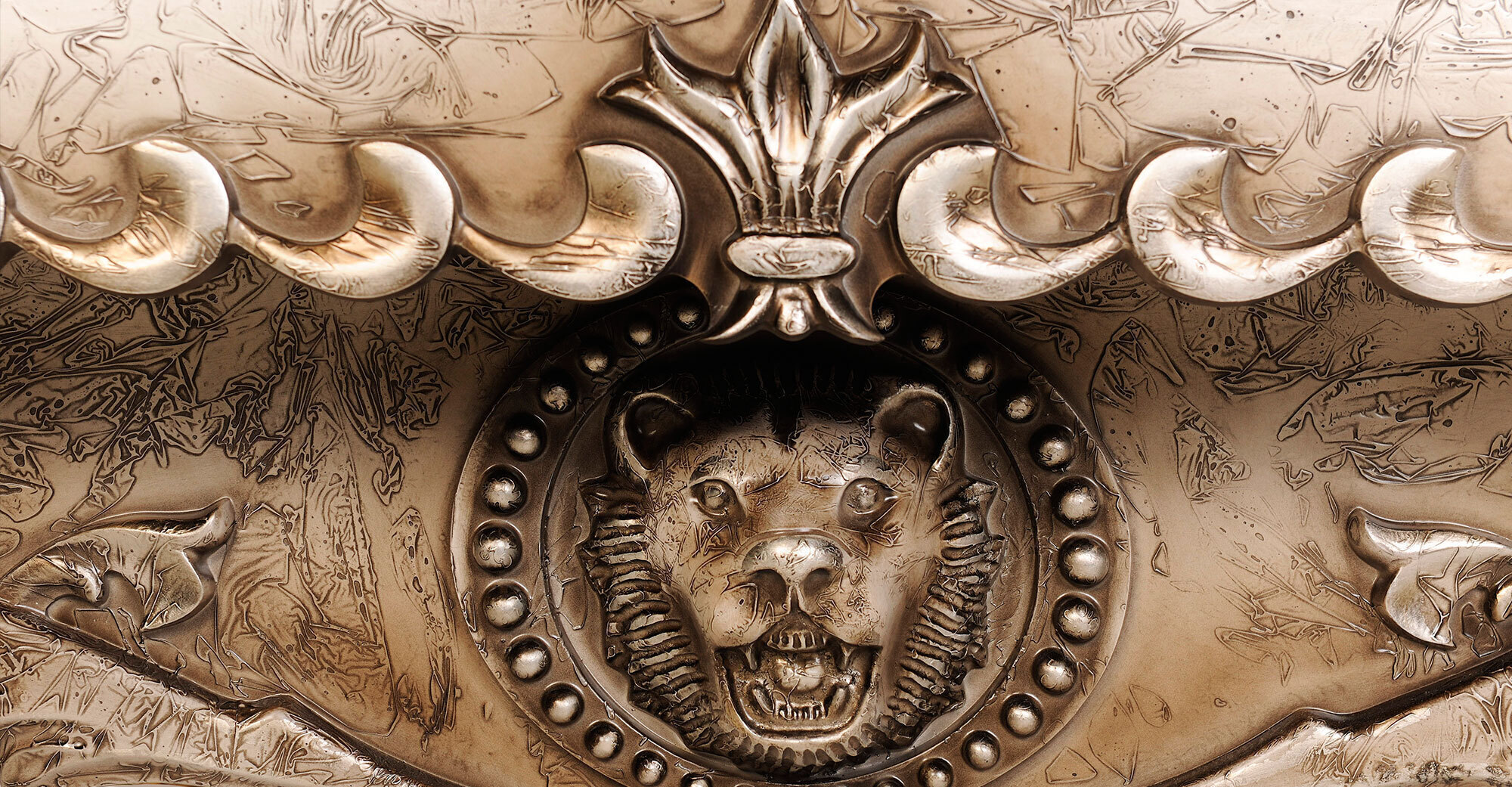 От предшественника «Лео II» отличает отделка. Это более фактурный стол, с ярко выраженным рыцарским характером. Причудливая сетка «шрамов» сплетается в единый благородный декор, наполняя сам стол духом средневекового историзма, придавая поверхности эффект металла. Выкраска стола выполняется вручную. Червленое серебро потали, авторское патинирование, россыпь рельефа и резных элементов представляют восхитительное сочетание. Лафет украшают львиные головы, ноги стола - это львиные лапы, которые изысканны и основательны одновременно.
