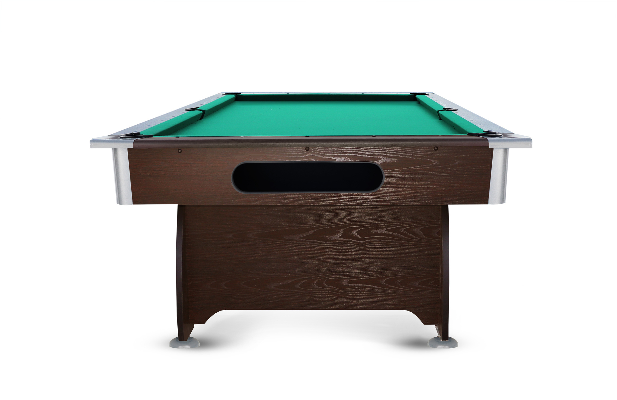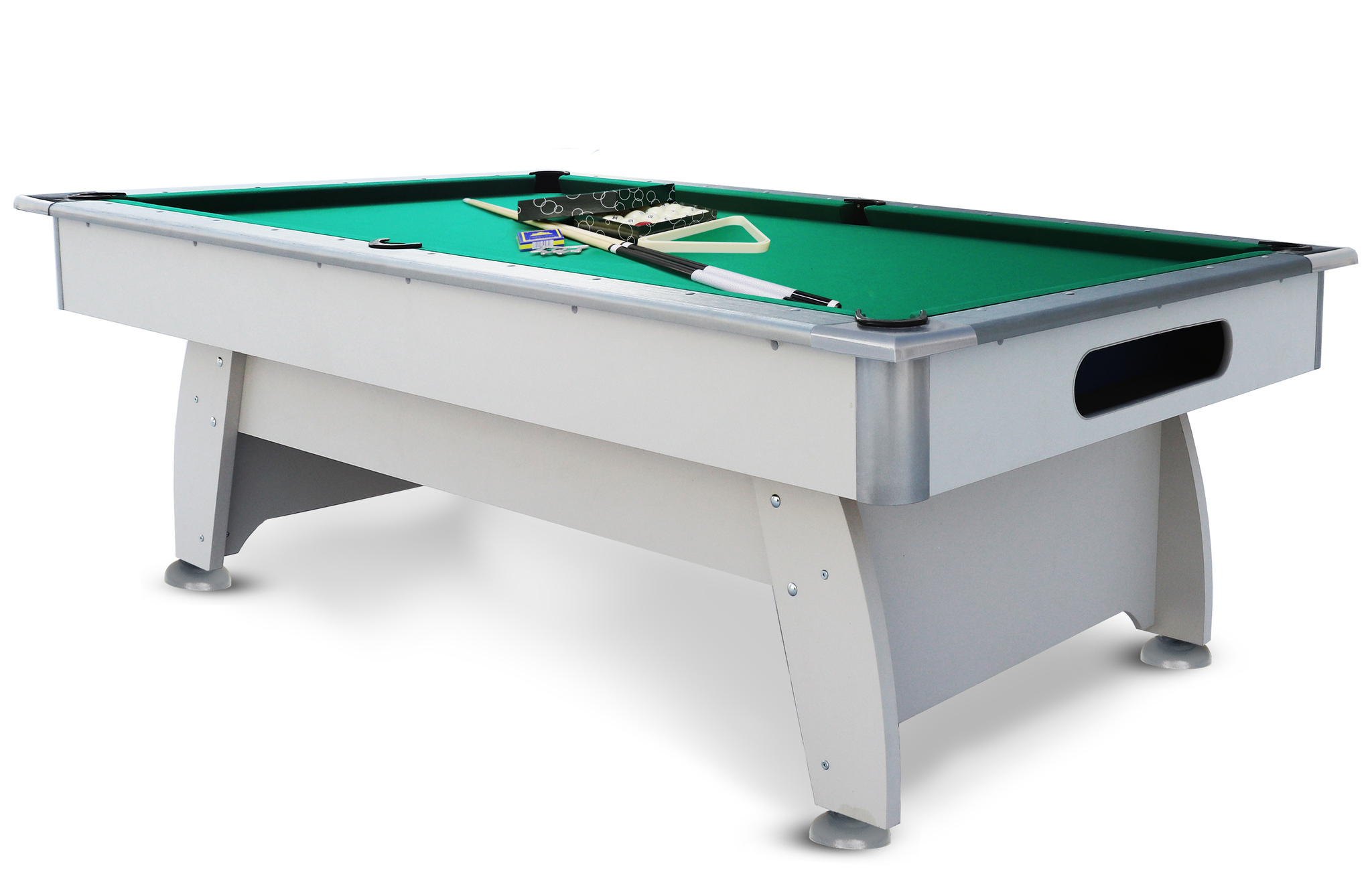 В комплектацию входит набор аксессуаров: для пула или русской пирамиды. Цветовое исполнение представлено двумя вариантами: серый с серебром и темное тиковое дерево.