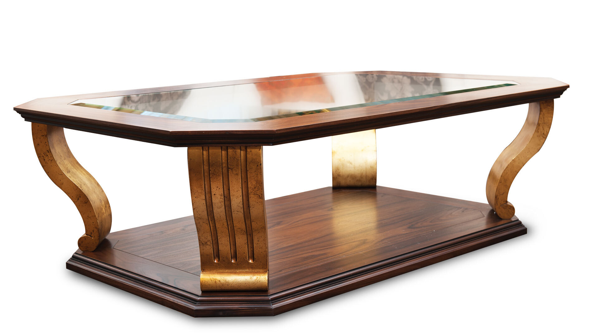 Характерная для античного времени стилистика. Величественный образ стола «Антик» создан путем сочетания формы, разных материалов и фактур, сдержанной в цвете выкраски. Вживленное в столешницу стекло облегчает внешнюю массивность стола и придает воздушности. Сочетание дерева, стекла и золота является уникальной особенностью стола «Антик».