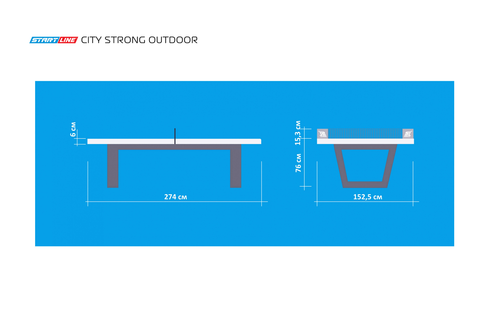 Многие поклонники настольного тенниса предпочитают играть на свежем воздухе, будь то загородный участок или парк досуга и отдыха. Стол для такого вида развлечений должен быть очень прочным и качественным. Основание стола City Strong Outdoor выполнено с применением армированного бетона, что обеспечивает его стойкость перед неблагоприятными воздействиями. Из-за своего внушительного веса - 890 кг, стол не требует дополнительного крепления к поверхности, к столу прилагается подробная инструкция по сборке. Столешница теннисного стола City Strong Outdoor изготовлена из супер прочного камня Super Stone, покрытого специальной пропиткой. Камень стойко выдерживает любые погодные условия и перепады температуры, не деформируется от сильных ударов, а наоборот делает их более точными. Также стол City Strong Outdoor оснащен встроенной металлической перфорированной сеткой толщиной 3 миллиметра, что защищает стол от актов вандализма. Стол отвечает стандарту ITTF. Настольный теннис по праву считается одной из самых популярных спортивных игр, в него играют дети и взрослые во всем мире. Регулярные занятия настольным теннисом способствуют укреплению мышц ног, рук, спины и пресса, развивает быстроту реакции и ловкость, тренирует сердечную мышцу и повышает общую выносливость организма. Габариты упаковки: Размер коробки 1:nbsp;nbsp;nbsp;nbsp;175 х 157 х 26 см Размер коробки 2:nbsp;nbsp;nbsp;nbsp;175 х 157 х 26 см Размер коробки 3:nbsp;nbsp;nbsp;nbsp;95 х 75 х 20 см Размер коробки 4:nbsp;nbsp;nbsp;nbsp;95 х 75 х 20 см Размер коробки 5:nbsp;nbsp;nbsp;nbsp;155 х 30 х 15 см