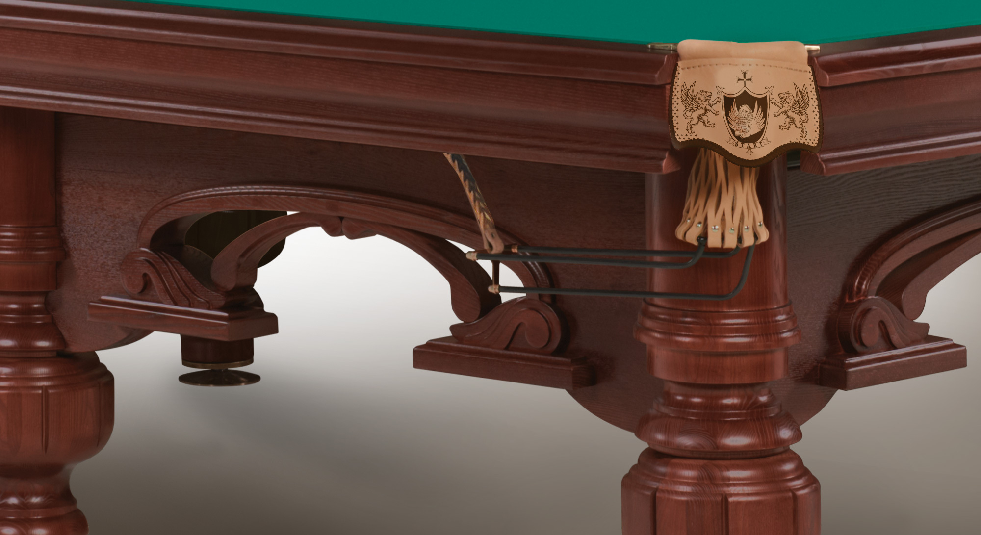 Безукоризненные игровые свойства и роскошный дизайн теперь органично сочетаются в одной модели бильярдного стола. Лаконичные узоры на лафете, выполненные вручную, наверняка придутся по вкусу ценителям сдержанной роскоши.